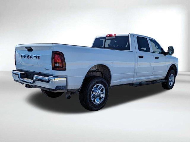 Bright White Clearcoat 2025 Ram 2500 Tradesman 4WD 8-Speed Automatic 6.4L V8 Bed Convenience Group (LED Bed Lighting and MOPAR Spray In Bedliner), Quick Order Package 2UA Tradesman, Tradesman Level 2 Equipment Group (115V Auxiliary Front Power Outlet, 12 Touchscreen Display, 2 Way Rear Headrest Seat, 4 Way Front Headrests, 40/20/40 Split Bench Seat, 400W Inverter, 4G LTE Wi-Fi Hot Spot, Air Conditioning ATC w/Dual Zone Control, Alexa Built-In, Anti-Spin Differential Rear Axle, Apple CarPlay, Auto-Dimming Rear-View Mirror, Black Exterior Mirrors, Bright Front Bumper, Bright Rear Bumper, Carpet Floor Covering, Center Hub, Chrome Grille Surround, Cloth 40/20/40 Bench Seat, Connected Travel & Traffic Services, Connectivity - US/Canada, Disassociated Touchscreen Display, Emergency Vehicle Alert System (EVAS), Exterior 115V AC Outlet, Exterior Mirrors Courtesy Lamps, Exterior Mirrors w/Heating Element, Exterior Mirrors w/Supplemental Signals, Front & Rear Floor Mats, Front Armrest w/Cupholders, Global Telematics Box Module (TBM), Google Android Auto, GPS Antenna Input, GPS Navigation, HD Radio, Integrated Voice Command w/Bluetooth, Manual Adjust 4-Way Driver Seat, Manual Adjust 4-Way Front Passenger Seat, Manual Folding Exterior Mirrors, Manual Telescoping Mirrors, Matte Black Mesh Grille w/Chrome, Mirror Running Lights, Mopar Black Tubular Side Steps, Off-Road Info Pages, ParkSense Front/Rear Park Assist System, Power Adjust Mirrors, Power Adjustable Convex Aux Mirrors, Power Heated Folding Telescope Mirrors, Radio: Uconnect 5 Nav w/12.0 Display, Rear Folding Seat, Rear Power Sliding Window, Remote USB Port - Charge Only, Selectable Tire Fill Alert, SiriusXM Radio Service, SiriusXM w/360L, Storage Tray, Tinted Acoustic Windshield Glass, Trailer Tow Pages, and Wheels: 18 x 8.0 Steel Chrome Clad), 3.73 Axle Ratio, 4-Wheel Disc Brakes, 50 Gallon Fuel Tank, 6 Speakers, ABS brakes, Add Back Vinyl Seat, Air Conditioning, AM/FM radio: SiriusXM, Apple CarPlay/Android Auto, Black Wheel Center Hub, Brake assist, Compass, Dash Pass Thru Wire Circuits, Delay-off headlights, Driver door bin, Dual front impact airbags, Dual front side impact airbags, Electronic Stability Control, Front anti-roll bar, Front Center Armrest w/Storage, Front fog lights, Front License Plate Bracket, Front reading lights, Fully automatic headlights, Heavy Duty Vinyl 40/20/40 Split Bench Seat, I/P Mounted Auxiliary Switches, Illuminated entry, Low tire pressure warning, Manufacturer's Statement of Origin, MOPAR Front & Rear Rubber Floor Mats, Occupant sensing airbag, Outside temperature display, Overhead airbag, Overhead console, Panic alarm, ParkView Rear Back-Up Camera, Passenger door bin, Passenger vanity mirror, Power steering, Power windows, Radio data system, Radio: Uconnect 5 w/8.4 Display, Rear anti-roll bar, Rear step bumper, Rear window defroster, Remote keyless entry, Speed control, Tachometer, Tilt steering wheel, Traction control, Upfitter Electronic Module (VSIM), Variably i
