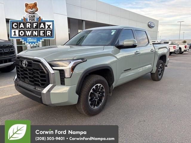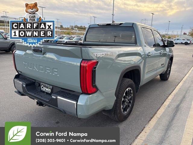Take the lead in our Accident Free, One Owner 2025 Toyota Tundra SR5 CrewMax 4X4 with the TRD Off-Road Package that's tough, versatile, and smartly equipped in Lunar Rock! Motivated by a Twin-TurboCharged 3.4 Liter i-FORCE V6 supplying 389hp to a 10 Speed Automatic transmission with multiple performance modes. An automatic limited-slip differential and an athletic TRD off-road suspension help you maximize capability in this Four Wheel Drive truck, and it sees nearly 22mpg on the highway. Confident good looks are standard with our Tundra's LED lighting, fog lamps, TRD grille, a rugged composite bed, 18-inch TRD Off-Road alloy wheels, heated power mirrors, and an easy lift/lower tailgate boldly stamped with the Toyota name.