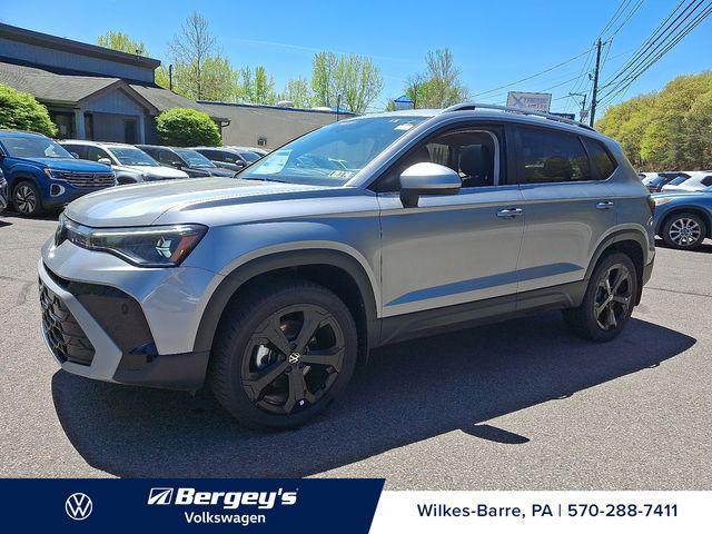 Silver 2025 Volkswagen Taos 1.5T SEL AWD 8-Speed Automatic with Tiptronic 1.5L I4 Turbocharged DOHC 16V LEV3-SULEV30 174hp25/33 City/Highway MPG