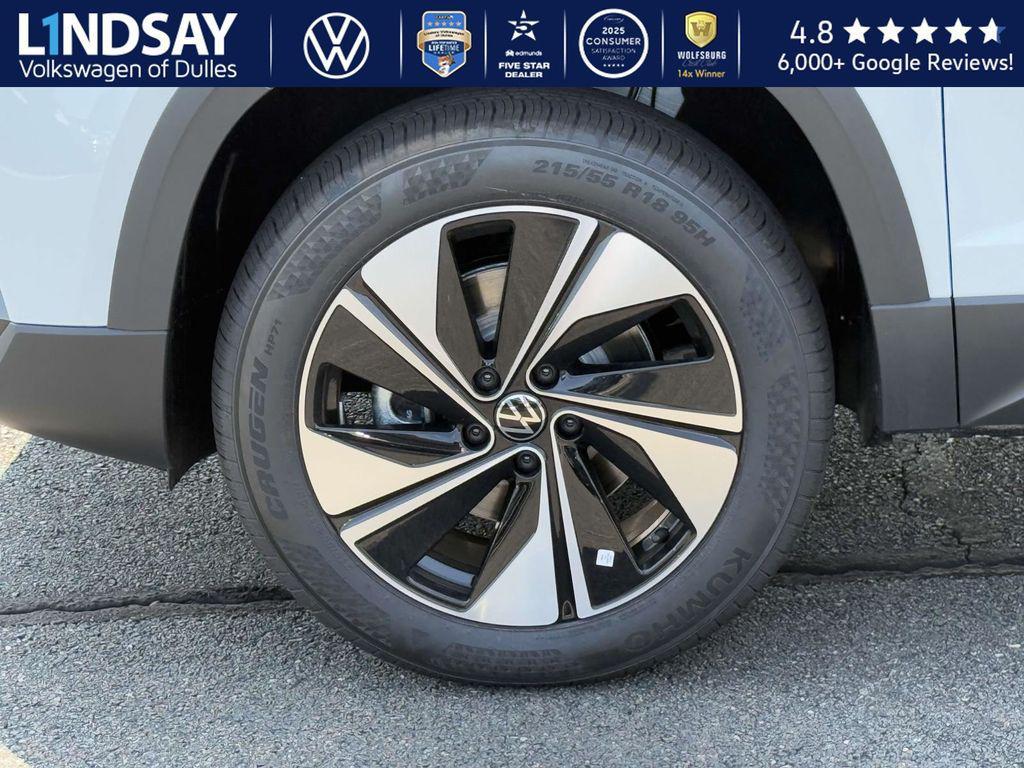 Pure White 2025 Volkswagen Taos SE AWD 8-Speed Automatic with Tiptronic 1.5L I4 Turbocharged DOHC 16V LEV3-SULEV30 174hp VOLKSWAGEN DIGITAL COCKPIT INSTRUMENT DISPLAY!, IQ.DRIVE PACKAGE - TRAVEL ASSIST (SEMI-AUTOMATED DRIVING ASSISTANCE), ADAPTIVE CRUISE CONTROL, LANE ASSIST, EMERGENCY ASSIST, FORWARD COLLISION WARNING & AUTONOMOUS EMERGENCY BRAKING, BLIND SPOT MONITOR W/ REAR TRAFFIC ALERT!, Active Blind Spot Monitor, Active Cruise Control, AM/FM radio: SiriusXM with 360L, Auto High-beam Headlights, Auto-Dimming Rearview Mirror w/HomeLink Connect, Automatic temperature control, CloudTex & Cloth Seating Surfaces, Electronic Stability Control, Emergency communication system: VW Car-Net Safe & Secure 5-year, Exterior Parking Camera Rear, Front dual zone A/C, Fully automatic headlights, Heated door mirrors, Heated Front Bucket Seats, Heated steering wheel, Illuminated entry, Leather Shift Knob, Panoramic Sunroof Package, Power driver seat, Radio: MIB3 Composition Media AM/FM/HD, Rain sensing wipers, Remote keyless entry, Split folding rear seat, Steering wheel mounted audio controls, Variably intermittent wipers, Wheels: 18'' 2-Tone Machined Alloy. 25/33 City/Highway MPG