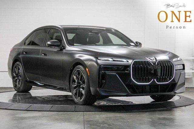 The 2026 BMW 7 Series 740i Sedan is a luxurious and sophisticated vehicle that embodies the pinnacle of automotive engineering and design. This new sedan is a perfect blend of performance, comfort, and cutting-edge technology, making it an ideal choice for those who seek elegance and innovation in their driving experience. The exterior of the 740i Sedan is finished in a stunning Dravit Grey Metallic color, which exudes a sense of modernity and class. The sleek lines and aerodynamic design are complemented by the 21-inch Individual Aero Style 910I wheels, which feature staggered summer tires for enhanced performance. The vehicle also includes an M Sport Professional Package, which adds M Sport Brakes with Black Calipers, Extended Shadowline Trim, a rear spoiler, and other M Sport Pro contents, giving it a sporty and dynamic appearance. The Illuminated Kidney Grille and LED headlights with automatic high beams further enhance its striking presence on the road. Inside, the 740i Sedan offers a luxurious and comfortable cabin with Smoke White Extended Merino Leather Upholstery. The interior is adorned with Mirror Oak High Gloss Trim, adding a touch of elegance and sophistication. The front ventilated seats ensure comfort during long drives, while the heated front and rear seats provide warmth in colder weather. The heated steering wheel and leather-wrapped steering wheel add to the overall comfort and luxury of the interior. Key features of the 2026 BMW 7 Series 740i Sedan include: - **Performance and Handling:** - Intercooled Turbo Gas/Electric I-6 3.0 L/183 engine - Rear Wheel Drive (RWD) - Air Suspension and Active Suspension for a smooth ride - Increased Top Speed Limiter - **Technology and Connectivity:** - Premium Sound System with AM/FM Stereo, Satellite Radio, and HD Radio - Bluetooth Connection and Smart Device Integration with Apple CarPlay and Android Auto - Navigation System with GPS - WiFi Hotspot for connectivity on the go - Heads-Up Display for easy access to important information - **Safety and Driver Assistance:** - Driving Assistant Plus with features like Lane Departure Warning, Lane Keeping Assist, and Front Collision Mitigation - Blind Spot Monitor and Cross-Traffic Alert - Rear Parking Aid and Automatic Parking - Back-Up Camera and Rear Collision Mitigation - **Convenience and Comfort:** - Keyless Entry and Keyless Start - Remote Engine Start and Hands-Free Liftgate - Multi-Zone Climate Control with Rear A/C - Power Driver and Passenger Seats with Memory and Lumbar Support - Panoramic Roof for an open and airy feel With its combination of luxury, performance, and advanced technology, the 2026 BMW 7 Series 740i Sedan is designed to provide an unparalleled driving experience. Whether you're navigating city streets or cruising on the highway, this sedan offers a perfect blend of style, comfort, and innovation.