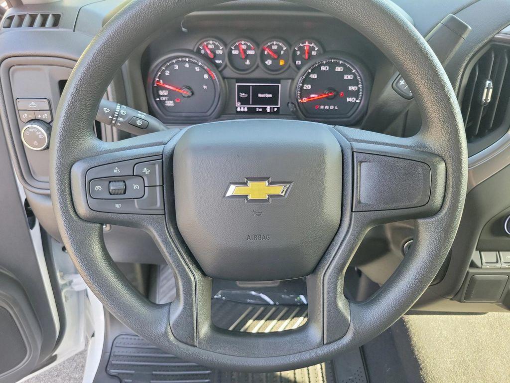 Summit White 2026 Chevrolet Silverado 1500 Custom RWD 8-Speed Automatic 2.7L I4 Turbocharged DOHC 16V LEV3-SULEV30 310hp 8-Speed Automatic, Black Cloth, 10-Way Power Driver Seat w/Lumbar, 120-Volt Bed Mounted Power Outlet, 120-Volt Interior Power Outlet, 3.42 Rear Axle Ratio, 3.5' Monochromatic Display Driver Info Center, 4-Wheel Disc Brakes, 40/20/40 Front Split-Bench Seat, 6 Speakers, 6-Speaker Audio System, ABS brakes, Air Conditioning, Alloy wheels, AM/FM radio: SiriusXM, Apple CarPlay/Android Auto, Auto High-beam Headlights, Automatic Emergency Braking, Bluetooth For Phone, Brake assist, Bumpers: body-color, Cloth Seat Trim, Color-Keyed Carpeting Floor Covering, Compass, Custom Convenience Package, Custom Value Package, Deep-Tinted Glass, Delay-off headlights, Driver door bin, Driver vanity mirror, Dual front impact airbags, Dual front side impact airbags, Dual Rear USB Ports (Charge Only), Electric Rear-Window Defogger, Electronic Cruise Control, Electronic Stability Control, Emergency communication system: OnStar, EZ Lift Power Lock Release Tailgate, Following Distance Indicator, Forward Collision Alert, Front anti-roll bar, Front Center Armrest w/Storage, Front Frame-Mounted Black Recovery Hooks, Front Pedestrian Braking, Front reading lights, Front Rubberized Vinyl Floor Mats, Front wheel independent suspension, Fully automatic headlights, HD Rear Vision Camera, Heated door mirrors, High Capacity Suspension Package, Hitch Guidance, Illuminated entry, IntelliBeam Automatic High Beam On/Off, Lane Keep Assist w/Lane Departure Warning, LED Cargo Area Lighting, Low tire pressure warning, Manual Tilt Wheel Steering Column, Occupant sensing airbag, OnStar Services Capable, Outside temperature display, Overhead airbag, Overhead console, Panic alarm, Passenger door bin, Passenger vanity mirror, Power door mirrors, Power driver seat, Power Front Windows w/Driver Express Up/Down, Power Front Windows w/Passenger Express Down, Power Rear Windows w/Express Down, Power steering, Power windows, Preferred Equipment Group 1CX, Premium audio system: Chevrolet Infotainment 3, Radio data system, Radio: Chevrolet Infotainment 3 System, Rear 60/40 Folding Bench Seat (Folds Up), Rear reading lights, Rear Rubberized-Vinyl Floor Mats, Rear step bumper, Rear window defroster, Remote Keyless Entry, Remote keyless entry, Remote Vehicle Starter System, Security system, SiriusXM Trial Subscription, Speed control, Speed-sensing steering, Split folding rear seat, Standard Tailgate, Tachometer, Teen Driver, Theft Deterrent System (Unauthorized Entry), Tilt steering wheel, Tire Pressure Monitoring System, Traction control, Trailering Package, Trip computer, Variably intermittent wipers, Voltmeter, Wheels: 20' x 9' Bright Silver Painted Aluminum, Wi-Fi Hot Spot Capable, Freshly Reconditioned!, 8-Speed Automatic, Black Cloth.