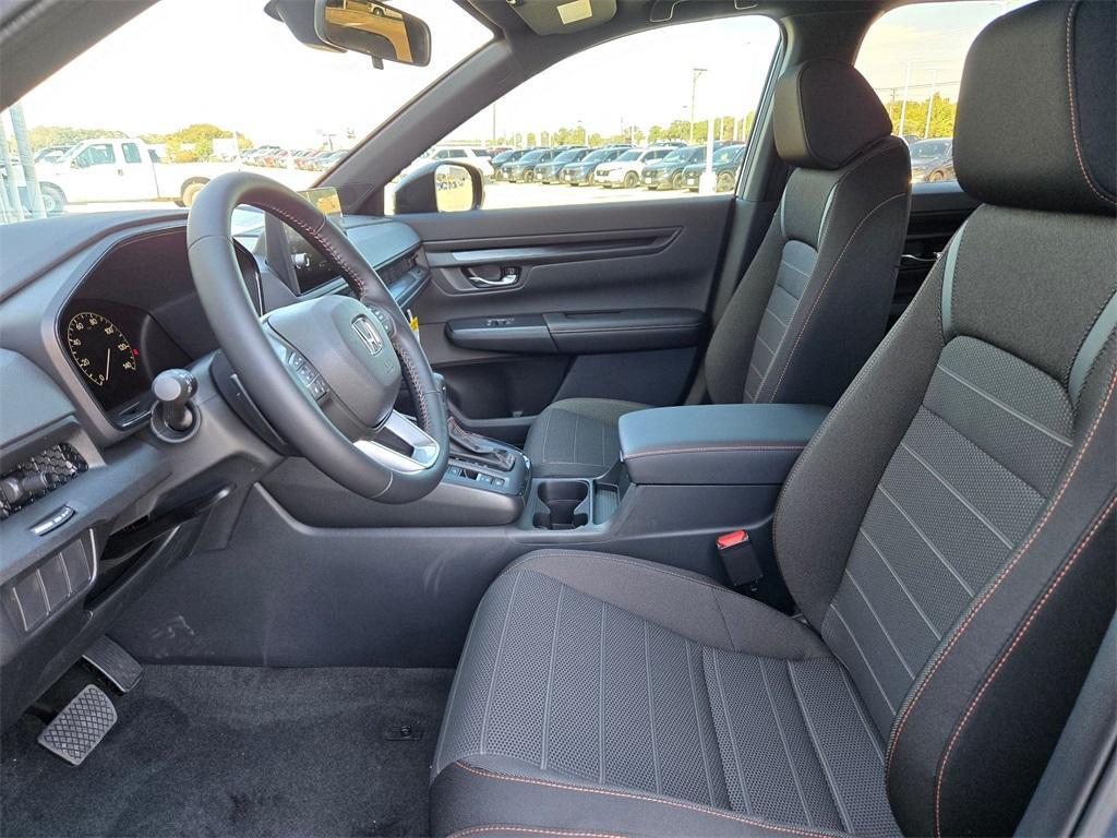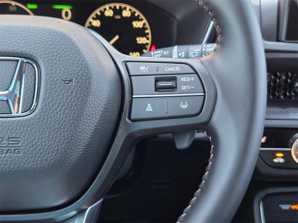 Blue 2026 Honda CR-V Hybrid Sport FWD eCVT 2.0L I4 DOHC 16V 2.0L I4 DOHC 16V. 43/36 City/Highway MPG This vehicle comes well equipped with 2.0L I4 DOHC 16V 2.0L I4 DOHC 16V, 4-Wheel Disc Brakes, 6 Speakers, ABS brakes, Adaptive Cruise Control: Adaptive Cruise Control (ACC) with Low-Speed Follow, Air Conditioning, Alloy wheels, Apple CarPlay/Android Auto, Auto High-beam Headlights, Automatic temperature control, Blind Spot Information (BSI) System warning, Brake assist, Bumpers: body-color, Cloth Seat Trim, Compass, Delay-off headlights, Driver door bin, Driver vanity mirror, Dual front impact airbags, Dual front side impact airbags, Electronic Stability Control, Exterior Parking Camera Rear, Four wheel independent suspension, Front anti-roll bar, Front Bucket Seats, Front Center Armrest, Front dual zone A/C, Front reading lights, Fully automatic headlights, Heated door mirrors, Heated Front Bucket Seats, Heated front seats, Illuminated entry, Knee airbag, Leather Shift Knob, Leather steering wheel, Low tire pressure warning, Occupant sensing airbag, Outside temperature display, Overhead airbag, Overhead console, Panic alarm, Passenger door bin, Passenger vanity mirror, Power door mirrors, Power driver seat, Power moonroof, Power steering, Power windows, Radio data system, Radio: 240-Watt AM/FM Audio System, Rear anti-roll bar, Rear reading lights, Rear seat center armrest, Rear side impact airbag, Rear window defroster, Rear window wiper, Remote keyless entry, Security system, Speed control, Speed-sensing steering, Speed-Sensitive Wipers, Split folding rear seat, Spoiler, Steering wheel mounted audio controls, Telescoping steering wheel, Tilt steering wheel, Traction control, Trip computer, Turn signal indicator mirrors, Variably intermittent wipers, and Wheels: 18 Berlina Black.