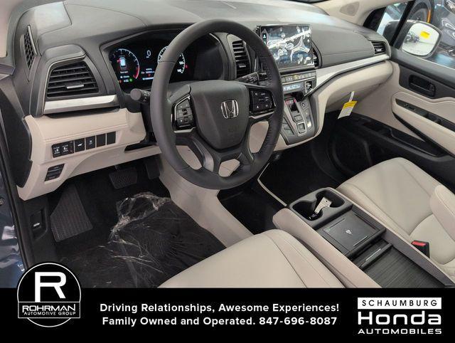 Discover the perfect family companion with the 2026 Honda Odyssey EX-L. This exceptional minivan boasts a captivating blue exterior, seamlessly blending style and functionality to elevate your driving experience. ⢠Bluetooth, Hands-Free ⢠Power moonroof ⢠Power Liftgate ⢠Blind Spot Information (BSI) System warning ⢠Lane Keeping Assist System (LKAS) active ⢠Exterior Parking Camera Rear ⢠Adaptive Cruise Control (ACC) with Low-Speed Follow ⢠Apple CarPlay/Android Auto ⢠3rd row seats: split-bench ⢠Heated front seats ⢠Leather-Trimmed Seats Powered by a robust 3.5L V6 SOHC i-VTEC 24V engine, this Odyssey delivers impressive performance with a 10-Speed Automatic transmission and Front-Wheel Drive. Enjoy the perfect balance of power and efficiency, with an EPA-estimated 19 MPG in the city and 28 MPG on the highway. Step inside and experience the remarkable comfort and convenience of this Odyssey EX-L. The spacious interior offers ample room for the entire family, with a wealth of premium features to elevate your journey. Indulge in the warmth of heated front seats, while the leather-trimmed upholstery adds a touch of sophistication. Cutting-edge technology takes center stage, with seamless smartphone integration through Apple CarPlay and Android Auto. Stay connected and entertained on the go, while the 160-Watt AM/FM/HD/SiriusXM Audio System delivers exceptional sound quality. Safety is paramount, and the Odyssey EX-L is equipped with a suite of advanced driver-assistive technologies. Enjoy the peace of mind of the Blind Spot Information (BSI) System, Lane Keeping Assist System (LKAS), and Adaptive Cruise Control (ACC) with Low-Speed Follow, keeping you and your loved ones secure on the road. Elevate your family's driving experience with the 2026 Honda Odyssey EX-L. This exceptional minivan combines style, performance, and cutting-edge features to make every journey a memorable one. Visit our showroom today and discover why the Odyssey EX-L is the perfect choice for your next family adventure.