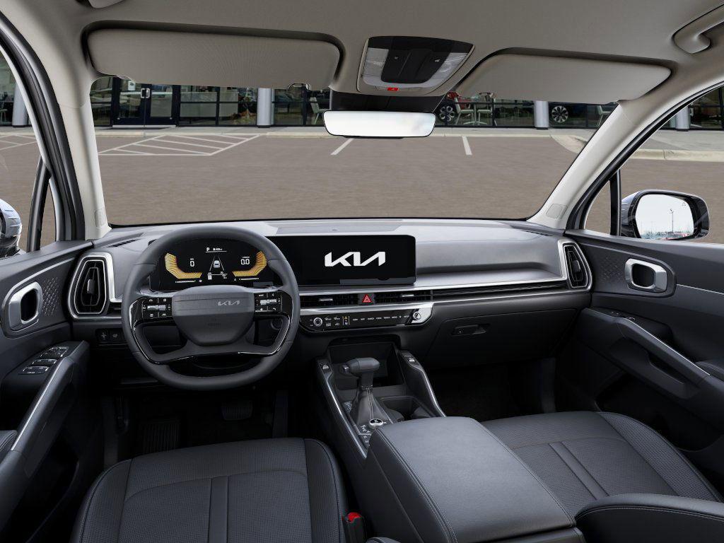 Glacial White Pearl 2026 Kia Sorento EX AWD 8 Speed Dual Clutch 2.5L I4 DGI Turbocharged DOHC 16V LEV3-SULEV30 281hp This vehicle features ABS brakes, Active Cruise Control, Alloy wheels, Electronic Stability Control, Front dual zone A/C, Heated door mirrors, Heated Front Bucket Seats, Heated front seats, Illuminated entry, Low tire pressure warning, Navigation System, Power Liftgate, Remote keyless entry, Traction control, 3rd row seats: split-bench, 4-Wheel Disc Brakes, 6 Speakers, Air Conditioning, AM/FM radio: SiriusXM, Apple CarPlay & Android Auto, Auto High-beam Headlights, Auto-dimming Rear-View mirror, Automatic temperature control, Brake assist, Bumpers: body-color, Delay-off headlights, Driver door bin, Driver vanity mirror, Dual front impact airbags, Dual front side impact airbags, Emergency communication system: 911 Connect, Exterior Parking Camera Rear, Four wheel independent suspension, Front anti-roll bar, Front Bucket Seats, Front Center Armrest, Front fog lights, Front reading lights, Fully automatic headlights, Knee airbag, Leather Shift Knob, Leather steering wheel, Occupant sensing airbag, Outside temperature display, Overhead airbag, Overhead console, Panic alarm, Passenger door bin, Passenger vanity mirror, Power door mirrors, Power driver seat, Power passenger seat, Power steering, Power windows, Radio data system, Radio: AM/FM Standard Sound System, Rear anti-roll bar, Rear reading lights, Rear seat center armrest, Rear side impact airbag, Rear window defroster, Rear window wiper, Security system, Speed control, Speed-sensing steering, Split folding rear seat, Spoiler, Steering wheel mounted audio controls, SynTex Artificial Leather Seat Trim, Tachometer, Telescoping steering wheel, Tilt steering wheel, Trip computer, Turn signal indicator mirrors, Variably intermittent wipers, and Wheels: 20'' Machine-Finished Gloss Black Alloy.20/27 City/Highway MPG