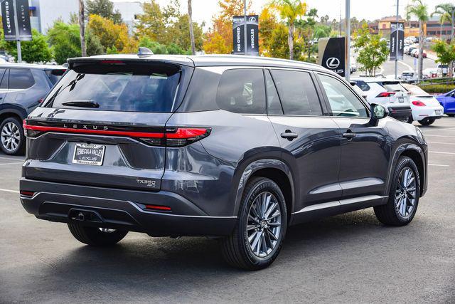 Cloudburst Gray 2026 Lexus TX 350 AWD 8-Speed Automatic 20/26 City/Highway MPG 2.4L I412 Speakers, 20'' Wheels, 3rd row seats: split-bench, 4-Wheel Disc Brakes, ABS brakes, Air Conditioning, Alloy wheels, AM/FM radio, Apple CarPlay/Android Auto, Auto High-beam Headlights, Auto tilt-away steering wheel, Auto-dimming door mirrors, Auto-dimming Rear-View mirror, Automatic temperature control, Brake assist, Bumpers: body-color, Delay-off headlights, Driver door bin, Driver vanity mirror, Dual front impact airbags, Dual front side impact airbags, Electronic Stability Control, Emergency communication system: Safety Connect (5-year minimum), Exterior Parking Camera Rear, Four wheel independent suspension, Front anti-roll bar, Front Bucket Seats, Front Center Armrest, Front dual zone A/C, Front fog lights, Front reading lights, Fully automatic headlights, Garage door transmitter: HomeLink, Heated door mirrors, Heated Front Seats, Heated front seats, Heated steering wheel, Illuminated entry, Knee airbag, Leather Shift Knob, Leather steering wheel, Lexus Interface w/14'' Touchscreen Display, Low tire pressure warning, Navigation system: Drive Connect Cloud Navigation (3-year trial subscription included), NuLuxe Seat Trim, Occupant sensing airbag, Outside temperature display, Overhead airbag, Panic alarm, Passenger door bin, Passenger vanity mirror, Power door mirrors, Power driver seat, Power Liftgate, Power passenger seat, Power steering, Power windows, Radio data system, Radio: 12-Speaker Lexus Premium Sound System, Rain sensing wipers, Rear air conditioning, Rear anti-roll bar, Rear reading lights, Rear seat center armrest, Rear window defroster, Rear window wiper, Reclining 3rd row seat, Remote keyless entry, Security system, Speed control, Speed-sensing steering, Split folding rear seat, Spoiler, Steering wheel mounted audio controls, Tachometer, Telescoping steering wheel, Tilt steering wheel, Traction control, Trip computer, Turn signal indicator mirrors, Variably intermittent wipers, and Wheels: 20'' Multispoke Alloy.