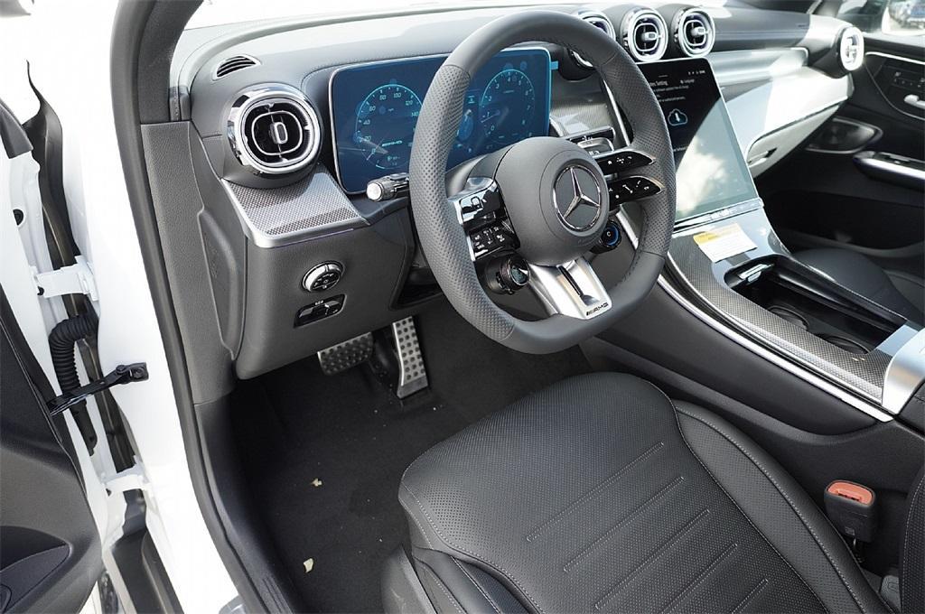 Polar_Whihte 2026 Mercedes-Benz GLC GLC 43 AMG® 4MATIC® 4D Sport Utility 4MATIC® 9-Speed Automatic I4 Burmester is a registered trademark of Burmester Audiosysteme GmbH, Berlin, Germany. This vehicle's options includes: 11.9 Center Touchscreen Display, 4-Wheel Disc Brakes, 8 Speakers, ABS brakes, Adaptive suspension, Air Conditioning, Alloy wheels, AM/FM radio: SiriusXM, Apple CarPlay®/Android Auto®, Auto High-beam Headlights, Auto tilt-away steering wheel, Auto-dimming door mirrors, Auto-dimming Rear-View mirror, Auto-leveling suspension, Automatic temperature control, Brake assist, Bumpers: body-color, Child-Seat-Sensing Airbag, Compass, Delay-off headlights, Driver door bin, Driver vanity mirror, Dual front impact airbags, Dual front side impact airbags, Electronic Stability Control, Emergency communication system: eCall Emergency System, Exterior Parking Camera Rear, Four wheel independent suspension, Front anti-roll bar, Front Bucket Seats, Front Center Armrest, Front dual zone A/C, Front reading lights, Fully automatic headlights, Garage door transmitter: HomeLink, Genuine wood dashboard insert, Head restraints memory, Heated door mirrors, Heated front seats, Heated steering wheel, Illuminated entry, Knee airbag, Leather steering wheel, Low tire pressure warning, MB-Tex/Microfiber Upholstery, Memory seat, Navigation System, Occupant sensing airbag, Outside temperature display, Overhead airbag, Overhead console, Panic alarm, Passenger door bin, Passenger vanity mirror, Power adjustable front head restraints, Power door mirrors, Power driver seat, Power Heated Front Seats, Power Liftgate, Power moonroof: Panoramic, Power passenger seat, Power steering, Power windows, Premium audio system: MBUX, Radio data system, Radio: MBUX Multimedia System, Rain sensing wipers, Rear anti-roll bar, Rear fog lights, Rear reading lights, Rear seat center armrest, Rear window defroster, Remote keyless entry, Security system, SiriusXM Satellite Radio, Smartphone Integration, Speed control, Speed-sensing steering, Split folding rear seat, Sport steering wheel, Steering wheel memory, Steering wheel mounted audio controls, Tachometer, Telescoping steering wheel, Tilt steering wheel, Traction control, Trip computer, Turn signal indicator mirrors, Variably intermittent wipers, Wheels: 9.5J x 20 Fr & 10.0J x 20 Rr AMG® Twin, Wireless Android Auto®, and Wireless Apple CarPlay®.