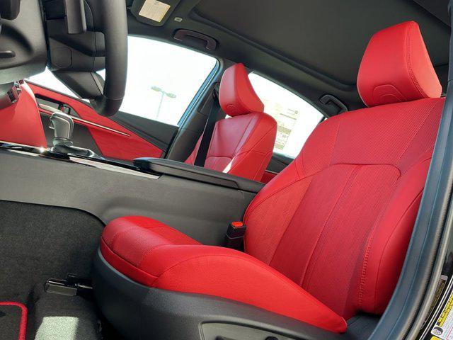Midnight Black Metallic 2026 Toyota Camry XSE FWD eCVT 2.5L 4-Cylinder 16V DOHC APPLE CARPLAY/ANDROID AUTO, TOYOTA CARE/ 2 YEARS FREE MAINTENANCE, DIGITAL KEY, INTEGRATED DASHCAM, BLACKOUT PACKAGE, FRONT ACCENT LIGHTING, 12.3' MULTIMEDIA DISPLAY, Cockpit Red w/Leather Seat Trim, 10' Color Head-Up Display, 4-Wheel Disc Brakes, 6 Speakers, 9-Speaker JBL Premium Audio System, ABS brakes, Active Cruise Control, Air Conditioning, Alloy wheels, AM/FM radio: SiriusXM, Apple CarPlay/Android Auto, Auto High-beam Headlights, Automatic temperature control, Black Badge Overlays (TMS), Black Lower Rocker Applique (TMS), Brake assist, Bumpers: body-color, Cargo Net (TMS), Carpet Floor Mats/Carpet Trunk Mat (TMS), Dashcam (TMS), Delay-off headlights, Digital Key Compatibility, Driver door bin, Driver Monitor Camera, Driver vanity mirror, Driver's Seat & Outer-Mirror Memory, Dual front impact airbags, Dual front side impact airbags, Electronic Stability Control, Emergency communication system: Safety Connect (5-year trial), Exterior Parking Camera Rear, Four wheel independent suspension, Front & Rear Parking Assist w/Automatic Braking, Front Accent Lights (TMS), Front anti-roll bar, Front Bucket Seats, Front Center Armrest, Front Cross-Traffic Alert, Front dual zone A/C, Front reading lights, Fully automatic headlights, Garage door transmitter: HomeLink, Heated door mirrors, Illuminated Door Sills (TMS), Illuminated entry, Illuminated Trunk Sill (TMS), Knee airbag, Lane Change Assist, Leather Shift Knob, Low tire pressure warning, Mudguards (TMS), Occupant sensing airbag, Outside temperature display, Overhead airbag, Overhead console, Panic alarm, Panoramic Glass Roof, Panoramic View Monitor, Passenger door bin, Passenger vanity mirror, Power door mirrors, Power driver seat, Power steering, Power windows, Premium Plus Package, Radio data system, Radio: 12.3' Toyota Audio Multimedia, Rain-Sensing Windshield Wipers, Rear anti-roll bar, Rear Cross-Traffic Braking, Rear seat center armrest, Rear window defroster, Remote keyless entry, Security system, Speed control, Speed-sensing steering, Split folding rear seat, Steering wheel mounted audio controls, Tilt steering wheel, Traction control, Traffic Jam Assist, Trip computer, Turn signal indicator mirrors, Variably intermittent wipers, Ventilated Front Seats, Wheels: 19' Smoked Gray & Black-Finished Alloy.