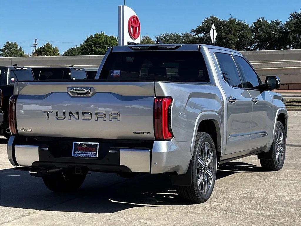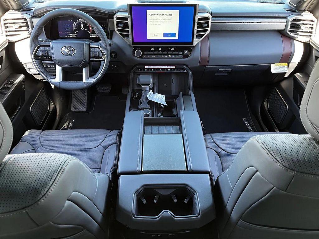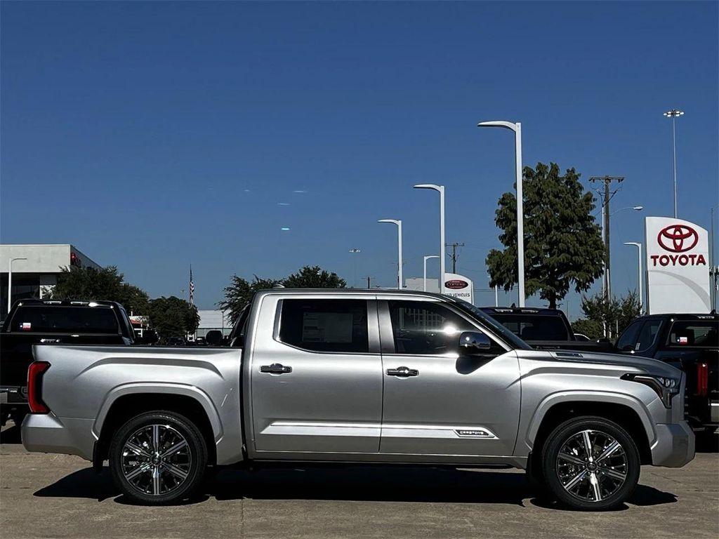 Conquer the Road with the 2026 Toyota Tundra 4WD Capstone Hybrid: Power, Precision, and Unmatched Comfort for the Adventurous Driver The 2026 Toyota Tundra 4WD Capstone Hybrid is engineered for those who demand power and precision in every drive. With its robust V6 Cylinder Engine paired with a cutting-edge hybrid system, this truck offers exceptional fuel efficiency without compromising on performance. The 10-speed automatic transmission ensures a smooth and responsive ride, while the four-wheel-drive capability guarantees you can tackle any terrain with confidence. The Celestial Silver Metallic exterior, complemented by aluminum and chrome wheels, exudes sophistication and ruggedness. The panoramic roof and power retractable running boards add a touch of luxury and convenience, making every journey more enjoyable. Inside, experience unparalleled comfort with leather seats that are both heated and cooled, ensuring optimal comfort in any weather. The seat massage feature and adjustable lumbar support provide a first-class experience for both driver and passengers. Safety is paramount, with features like the Blind Spot Monitor, Cross-Traffic Alert, and Lane Keeping Assist providing peace of mind on every adventure. The adaptive cruise control and heads-up display keep you informed and in control, while the premium sound system and WiFi hotspot ensure connectivity and entertainment on the go. The 2026 Tundra Capstone Hybrid is not just a truck it s a statement of power, luxury, and innovation. Be sure to call or visit Toyota of Richardson to discover more. Your new favorite vehicle awaits - don't let someone else drive it home!