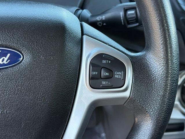 This Ford Fiesta is equipped with the following features: Equipment Group 200A, 6 Speakers, ABS brakes, Air Conditioning, Alloy wheels, AM/FM radio, Brake assist, Bumpers: body-color, CD player, Compass, Delay-off headlights, Driver door bin, Driver vanity mirror, Dual front impact airbags, Dual front side impact airbags, Electronic Stability Control, Emergency communication system: 911 Assist, Exterior Parking Camera Rear, Front anti-roll bar, Front Bucket Seats, Front Center Armrest, Front reading lights, Front wheel independent suspension, Fully automatic headlights, Illuminated entry, Knee airbag, Low tire pressure warning, Occupant sensing airbag, Overhead airbag, Overhead console, Passenger door bin, Passenger vanity mirror, Power door mirrors, Power steering, Power windows, Radio data system, Radio: AM/FM Stereo/CD Player/MP3 Capable, Rear reading lights, Rear window defroster, Remote keyless entry, Security system, Speed control, Speed-sensing steering, Split folding rear seat, Steering wheel mounted audio controls, SYNC Communications & Entertainment System, Tachometer, Telescoping steering wheel, Tilt steering wheel, Traction control, Trip computer, Unique Cloth Front Bucket Seats, Variably intermittent wipers, and Wheels: 15" Sparkle Silver Painted Aluminum.