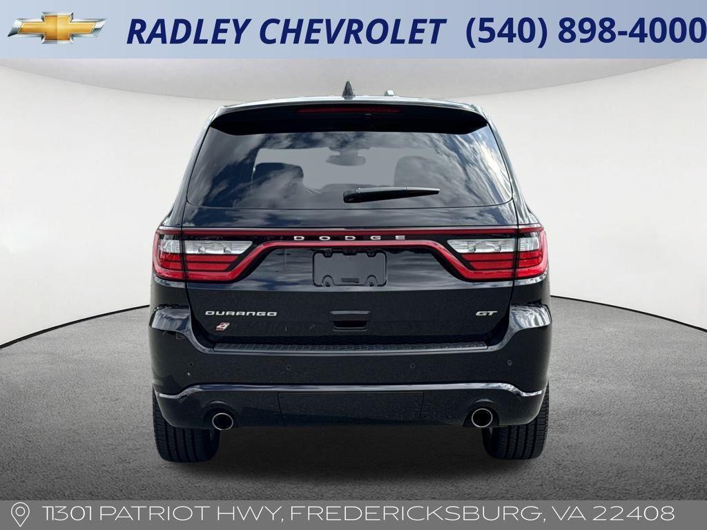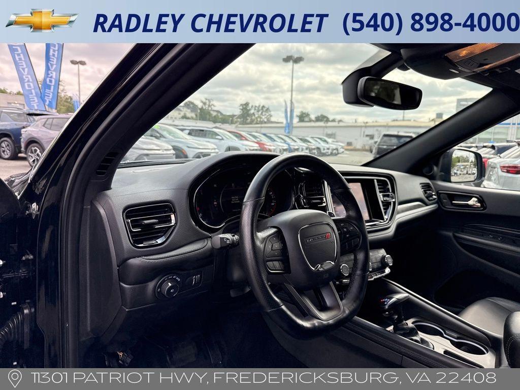 ** RADLEY VIP INCLUDED** Oil changes, tire rotations, alignment checks, engine light diagnostics and state inspection. Our goal is to make sure your next purchase will result in a high quality trade in later on down the road. CARFAX One-Owner. Clean CARFAX. Priced below KBB Fair Purchase Price! 18/25 City/Highway MPG DB Black Crystal Clearcoat 2022 Dodge Durango GT 3.6L V6 24V VVT AWD 8-Speed Automatic 3.45 Rear Axle Ratio, 3rd row seats: split-bench, 4-Wheel Disc Brakes, 6 Speakers, ABS brakes, Air Conditioning, Alloy wheels, AM/FM radio: SiriusXM, Anti-whiplash front head restraints, Apple CarPlay, Apple CarPlay/Android Auto, Auto-dimming Rear-View mirror, Automatic temperature control, Brake assist, Bumpers: body-color, Cloth Bucket Seats w/Shift Insert, Compass, Delay-off headlights, Driver door bin, Driver vanity mirror, Dual front impact airbags, Dual front side impact airbags, Electronic Stability Control, For More Info, Call 800-643-2112, Four wheel independent suspension, Front anti-roll bar, Front Bucket Seats, Front Center Armrest w/Storage, Front dual zone A/C, Front fog lights, Front reading lights, Fully automatic headlights, Google Android Auto, GPS Antenna Input, Heated door mirrors, Heated front seats, Heated steering wheel, Illuminated entry, Integrated Center Stack Radio, Integrated Voice Command w/Bluetooth, Knee airbag, Leather steering wheel, Low tire pressure warning, Occupant sensing airbag, Outside temperature display, Overhead airbag, Overhead console, Panic alarm, ParkView Rear Back-Up Camera, Passenger door bin, Passenger vanity mirror, Power door mirrors, Power driver seat, Power Liftgate, Power steering, Power windows, Quick Order Package 2BD GT, Radio data system, Radio: Uconnect 4 w/8.4' Display, Rear air conditioning, Rear anti-roll bar, Rear reading lights, Rear seat center armrest, Rear window defroster, Rear window wiper, Remote keyless entry, SiriusXM Radio Service, SiriusXM Satellite Radio, Speed control, Speed-sensing steering, Speed-Sensitive Wipers, Split folding rear seat, Spoiler, Steering wheel mounted audio controls, Tachometer, Telescoping steering wheel, Tilt steering wheel, Traction control, Trip computer, USB Host Flip, Variably intermittent wipers, Voltmeter, Wheels: 20' x 8.0' Fine Silver. Odometer is 19440 miles below market average! This vehicle is located at Radley Chevrolet 11301 Patriot Hwy Fredericksburg VA 22408. Phone 5408984000.