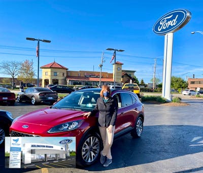 I had a great experience buying a new car at Arlington Heights Ford. My salesperson Elliott Reichel and all the individuals who assisted made the car buying experience very easy and pleasant. Not only d Heights Ford. My salesperson Elliott Reichel and all the individuals who assisted made the car buying experience very easy and pleasant. Not only do I have a gorgeous new Ford Escape Hybrid but I got it for a good price and expect to see continued great service. Thank you AH Ford! More