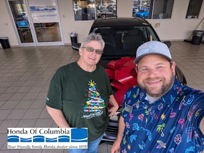 We've been buying cars from Honda of Columbia for many years. When we were ready to buy this time, our regular salesman had retired so Caden helped us. He is so kind and respectful and handled our transac years. When we were ready to buy this time, our regular salesman had retired so Caden helped us. He is so kind and respectful and handled our transaction, questions and requests like a pro. We would definitely buy from him again should the need arise. And, we love our new CRV! Thanks Caden and Chris! More