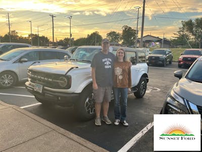 Our salesman, Jim Wagstaff and Sunset Ford treated us very well, we are very pleased with our 2025 Bronco purchase. Sunset Ford will be our first stop for any future vehicle purchases. Thanks again Sunse More