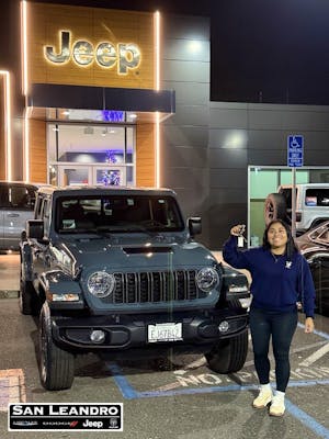I had a wonderful experience buying my Jeep Gladiator at San Leandro Chrysler Dodge Jeep Ramp. THANK YOU SO MUCH to Amanda and Walter for their assistance. I am usuallyskeptical about salespeople but I f San Leandro Chrysler Dodge Jeep Ramp. THANK YOU SO MUCH to Amanda and Walter for their assistance. I am usuallyskeptical about salespeople but I felt the team truly valued my business and helped me get a price was happy with. In all honesty, I didn't feel they pressured me to buy anything. I'm very satisfied with the whole experience and look forward to becoming a loyal customer. Sheyla More