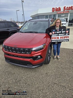 We had a great experience! The team is amazing, friendly and courteous. They went above and beyond to get us into our purple Jeep. We love it and love doing business at Dick Sc The team is amazing, friendly and courteous. They went above and beyond to get us into our purple Jeep. We love it and love doing business at Dick Scott in Fowlerville. Thanks for making us very happy customers! More