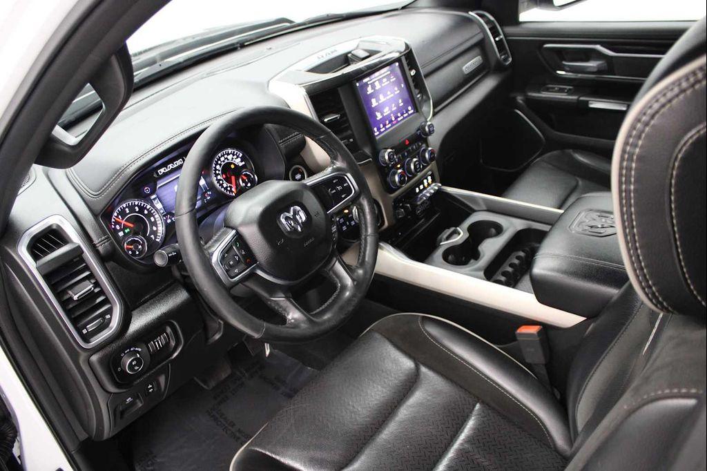 INSPECTION COMPLETED Every Herb Chambers pre-owned vehicle receives a complete multi-point inspection by factory trained technicians who inspect the tires, perform a brake inspection, battery voltage test as well as function test all lights. Additionally, we inspect the cooling system, transmission fluid, differential fluid as well as function test all options accessories. And for all non-Electric Vehicles we also check the Exhaust System and do a complete Oil Filter Change. We then professionally detail the vehicle inside and out. SERVICE WORK Service Work completed on this Ram All-New 1500 includes: Total Value: $820. Complete Multi-Point Inspection by factory trained technicians, Windshield Wiper Blades Replaced, Rear Glass Wiper Blade Replaced. BUY WITH CONFIDENCE Only a Herb Chambers CERTIFIED Pre-Owned vehicle receives a Rigorous Multi-Point Inspection 5-Day 100% Money Back Guarantee / 30-Day, 1,500 Mile Vehicle Exchange and a Portfolio CarFax. Visit www.herbchamberssmartpricing.com and https: //www.herbchambers.com/guarantee-details.htmfor for complete details. OPTION PACKAGES Tires: 275/55R20 OWL All Season, Black Interior Accents, Power Heated Fold-Away Mirrors, Sport Performance Hood, Body Color Front Bumper, Body Color Door Handles, Body Color Rear Bumper w/Step Pads, Wheels: 20' x 9' Premium Painted w/Inserts, Grille B/Color Outline 3 Texture 4, Remote Tailgate Release, Auto High Beam Headlamp Control, Blind Spot Cross Path Detection, Rain Sensitive Windshield Wipers, ParkSense Front/Rear Park Assist w/Stop, Tailgate Ajar Warning Lamp, Foam Bottle Insert (Door Trim Panel), Single Disc Remote CD Player, Rear 60/40 Folding Split Recline Seat, Active Noise Control System, Heavy Duty Engine Cooling, GVWR: 7,100 lbs, Dual Rear Exhaust w/Bright Tips, Hemi Badge, 220 Amp Alternator, Bucket Seats, Rear 60/40 Folding Split Recline Seat, Center Console Parts Module, Full Length Upgraded Floor Console, TRANSMISSION: 8-SPEED AUTOMATIC (8HP75). KEY FEATURES INCLUDE Heated Driver Seat, Cooled Driver Seat, Back-Up Camera, Premium Sound System, Satellite Radio. MP3 Player, Privacy Glass, Keyless Entry, Child Safety Locks, Steering Wheel Controls. Ram Laramie with Ivory White Tri-Coat Pearlcoat exterior and Black interior features a 8 Cylinder Engine with 305 HP at 6400 RPM*. This All-New 1500 is priced $5,200 below J.D. Power Retail. Was $29,988. EXPERTS RAVE 'It feels strong off the line, and it serves up excellent roll-on acceleration when it's time to merge or make a pass.' -Edmunds.com. .