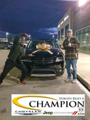 Great staff and our salesman, Rodney Taylor, really went up and beyond to make our purchase smooth. I would definitely buy from Champion Chrysler Dodge Jeep Ram again! up and beyond to make our purchase smooth. I would definitely buy from Champion Chrysler Dodge Jeep Ram again! More