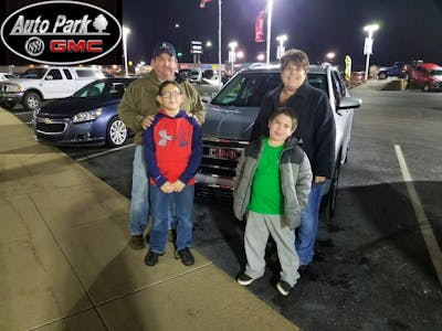 Great car buying experience! My husband had been searching for a white 2500 GMC Denali for 6 months. Either the mileage was too high, it was the wrong color, or the price was just My husband had been searching for a white 2500 GMC Denali for 6 months. Either the mileage was too high, it was the wrong color, or the price was just too high. We contacted Auto Park GMC about the truck we found online and Jeremy was an excellent sales person. We live in Michigan and Jeremy was able to do pretty much everything via phone and email. We drove over to sign a few papers and we were on our way. Jeremy was also great in answering any questions or concerns we had through the process. We are hoping to buy another car soon and we will definitely be coming back to Auto Park GMC and working with Jeremy again. Thanks so much! Scholten Family More
