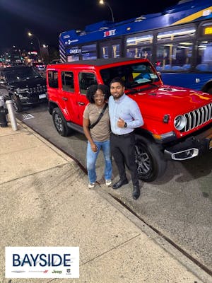 Avi my sales associate was the best. He was very patient, he went over every item on my check list and went in detail on the jeep I bought. Lance helped with the financing and Alan coord He was very patient, he went over every item on my check list and went in detail on the jeep I bought. Lance helped with the financing and Alan coordinated everyone for me. Can't ask for a better team or dealership. Honest and fair. Highly recommend Avi and bayside jeep for anyone looking for a new car. More