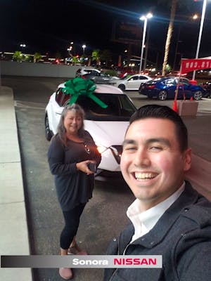 Purchasing a new vehicle. I can't express how happy & thankful I am to have purchased my vehicle with Sonora Nissan. It's so great not to wake up with "buyers remorse". From th I can't express how happy & thankful I am to have purchased my vehicle with Sonora Nissan. It's so great not to wake up with "buyers remorse". From the general manager Jan Bretschneider to Carlos Solano that did my paperwork, to my incredibly knowledgable and attentive sales consultant Cristian Perez, it was a wonderful experience. Customer service is just as important as quality to me, and I received both. I'm very pleased and look forward to having my vehicle serviced there...and sharing my experience with friends and family. More