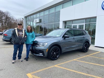 We went to IDE VW on Saturday to discuss turning in our two 2018 Jetta leases and leasing/purchasing a 2021 Tiguan. Dave was very knowledgeable and completely answered all of our questions and concerns. He two 2018 Jetta leases and leasing/purchasing a 2021 Tiguan. Dave was very knowledgeable and completely answered all of our questions and concerns. He provided us with all of the various options on purchasing the Tiguan for 5 and 6 years or leasing it. He was very patient and gave us time to discuss our options privately. We are extremely pleased with our new lease of a beautiful new Tiguan. More