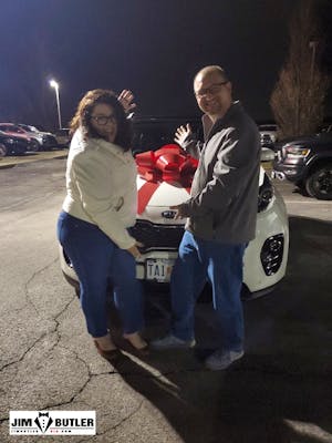 Merry Christmas to me! My husband and I went to Jim Butler Kia, after work on the eve of Christmas Eve. After looking and comparing, chatting with Annie Lam, looking around My husband and I went to Jim Butler Kia, after work on the eve of Christmas Eve. After looking and comparing, chatting with Annie Lam, looking around some more, taking silly internet car matchmaking quizzes like 'what is your soulmate car' then shopping around some more, for over 2 months I finally traded my 2 cars for one! I had done a ton of research and knew what they had on the lot. Plus I'm super picky and knew exactly what features I wanted in a car. There were only 2 cars I wanted to see. When we got there we were going to just walk to lot and see what happened. Miss Cheryl promptly came out to greet us! After the test drive, reviewing the carfax, appraising my trades and crunching the numbers a couple times, we came up with a deal we could all agree on! Cheryl was super nice, knowledgeable & friendly! (Ask her about her secret to keeping homemade christmas cookies soft!) I asked a TON of questions, all which Cheryl fielded with grace! She also helped me connect bluetooth and understand a lot of the car's features! While in finance Justin was funny, kind and professional. Secretly, I think he is the agent for Nemo, Marlin and Dory because they all live in the massive fish tank in his office! Super cool! I was very appreciative that everyone we worked with was very conscious about leaving your personal information (phone #, address, social, etc) 'up or open' on their computers or paperwork-can never be too secure with that stuff! All in all, we had a fun, friendly experience with everyone at Jim Butler Kia and I'm happy to own my second Sportage! More