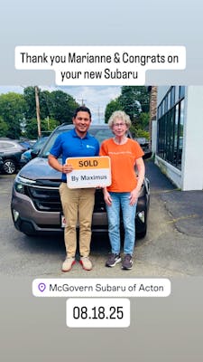 I am extremely pleased that I chose McGovern Subaru of Acton for my new car purchase. They had a vast selection to choose from on the lot and I came home with the car I wanted for the price I was promised Acton for my new car purchase. They had a vast selection to choose from on the lot and I came home with the car I wanted for the price I was promised. More