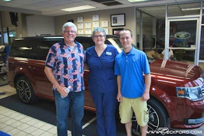 Zeck Ford redefines customer service and satisfaction! I don't even know where to begin. 'Outstanding' would be a good way to start, but it goes far above that. "Went the extra mile?" How about "went the e I don't even know where to begin. 'Outstanding' would be a good way to start, but it goes far above that. "Went the extra mile?" How about "went the extra MILES"?! Better yet, "knocked it completely out of the park"! In the spring of 2013 we came to Zeck Ford to look at a Flex. Ryan worked with us all day, and we drove away in a 2011 F-150. Fast forward to many months later. We were still looking for a Flex for Karen. Ryan introduced us to Kyle and now we had two of Zeck's finest working on this deal. They did not give up, period! They were both determined to help us find the vehicle we wanted. These two gentlemen were so very patient as we test drove several vehicles. Then this week, they made it happen for us! We got the Flex of our dreams, the absolutely perfect one for Karen. One that she just truly loves! Simply put, these excellent gentlemen deserve the highest accolades for taking customer service and satisfaction to the highest possible level! They exceeded ALL of our expectations and we are so very grateful to them. This Flex is awesome! Thank you so much, guys. You knocked it way out of the park, for sure, and you truly raised the bar to the highest level possible. It was such a great pleasure working with you both. With respect and gratitude, Dennis and Karen Nichols Zeck Ford customers for life. More