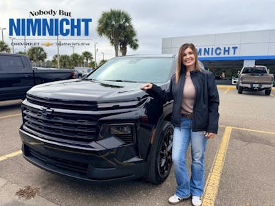 I personally had a great experience finding a car at nimnicht Chevrolet! Christina was very attentive and informative answering all my questions and addressing my concerns. Even when I made the wrong tu nimnicht Chevrolet! Christina was very attentive and informative answering all my questions and addressing my concerns. Even when I made the wrong turn on our test she was cool, calm and collective. The car was exactly what I was exactly what I was looking for and the bose sound system is amazing. "Ice ice baby" by vanilla ice never sounded so amazing! Thanks to a great saleswoman!!!! More
