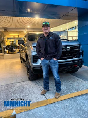 I had an excellent experience working with Alec Brannon at Nimnicht Chevrolet. From start to finish, Alec was professional, knowledgeable, and genuinely easy to work with. He took the time to answer all my at Nimnicht Chevrolet. From start to finish, Alec was professional, knowledgeable, and genuinely easy to work with. He took the time to answer all my questions, explained everything clearly, and never made me feel pressured at any point in the process. What really stood out was his honesty and attention to detail—he made sure I was comfortable and confident with my decision before moving forward. The whole experience was smooth, efficient, and way less stressful than buying a vehicle usually is. If you’re looking for someone who actually cares about helping you, I highly recommend asking for Alec Brannon at Nimnicht Chevrolet. I’d absolutely work with him again. More