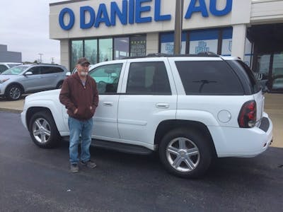 Very Happy The last auto we purchased was in 2005 from O'Daniels, very please with that experience which lead us back to them for our latest purchase today! Our The last auto we purchased was in 2005 from O'Daniels, very please with that experience which lead us back to them for our latest purchase today! Our Salesman Jeff took very good care of us over the last few month of looking till he found exactly what we wanted. Everyone we came in contact with at the dealership was truly kind, courteous, and professional. Thank you for all you did to make this happen for us. Your Friends, Rick & Sheri Kummer P.S. Still have our Envoy from 2005, runs and looks great! More