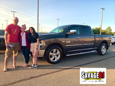 Absolute Satisfaction This is the 3rd vehicle we have purchased from Savage 61. We had the privilege to work with Jeremy Hernandez who was knowledgeable, extremely patient This is the 3rd vehicle we have purchased from Savage 61. We had the privilege to work with Jeremy Hernandez who was knowledgeable, extremely patient and went above and beyond keeping our boys occupied while we worked with Tim on financing. He took the time to make sure we were happy with the final finish of our vehicle and walked us through all the options our 2018 Ram 2500 had to offer. Tim was 100% customer focused and went above and beyond to make sure we got the absolute best deal and rate. I recommend Jeremy, Tim and Savage 61...the ABSOLUTE BEST CUSTOMER EXPERIENCE!!! More