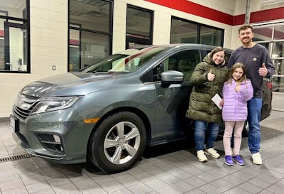 Super experience working with Patrick! We were talking about buying a van, but had planned to wait till spring. My old SUV had other ideas and jumped the timing chain just the other day, s We were talking about buying a van, but had planned to wait till spring. My old SUV had other ideas and jumped the timing chain just the other day, so we were down to one vehicle. We needed to buy a van ASAP. With a toddler and a newborn in tow, I wasn't looking forward to the lengthy buying process, but Patrick got us in and out with our new van fairly quickly! Thank you Patrick! More