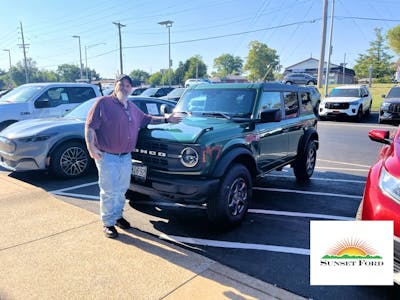 After my wife found the salesmen dismissive and uninterested in assisting her on the first day, I went to look at vehicles on the second day. Mike G. immediately approached me and offered assista uninterested in assisting her on the first day, I went to look at vehicles on the second day. Mike G. immediately approached me and offered assistance. He was kind, attentive, and professional. On the third day my wife and I purchased a Bronco with Mike's assistance. Mike took a discouraging situation, and made my wife and I satisfied and grateful customers of Sunset Ford. More