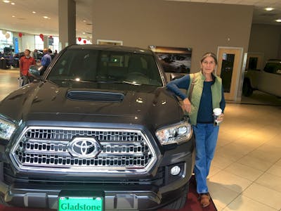 Great service door to door! I just bought a 2017 Toyota Tacoma 4 x 4 TRD at Gladstone Toyota and had a very pleasant buying experience. My salesman, Kermit Steward, made it com I just bought a 2017 Toyota Tacoma 4 x 4 TRD at Gladstone Toyota and had a very pleasant buying experience. My salesman, Kermit Steward, made it comfortable, convenient, understandable the whole way through. I would definitely recommend Kermit and Gladstone Toyota to anyone looking to buy a new or used vehicle. More