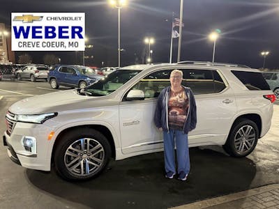 Glad we chose Weber. Got what we wanted on our trade and this Traverse checked all the boxes. They had the most rebates out of everyone in a 200 mile radius and honored a Got what we wanted on our trade and this Traverse checked all the boxes. They had the most rebates out of everyone in a 200 mile radius and honored all of them. No bait and switch that many dealers do to get you in the door. Joe Meador was great to work with. More
