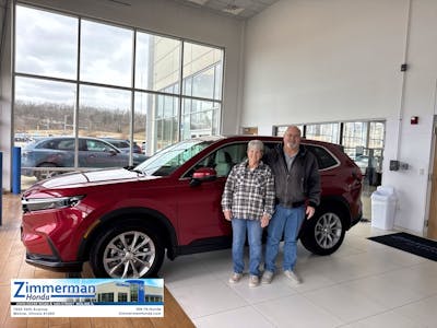 Last 6 new car/truck/SUV new purchases have been Hondas. Zimmerman Honda has been the best Dealership by far in the last 60 years buying from all Brands. honest, fair, and friendly. Luis Arango is the best Zimmerman Honda has been the best Dealership by far in the last 60 years buying from all Brands. honest, fair, and friendly. Luis Arango is the best salesman. Fair dealer, works to make you satisfied even after the deal is done. The last new Passport is not my first sale with Luis,and will not be our last. Thanks you Luis. Thanks to our great Service manager, Brent Staner, who has serviced all our Hondas. Doug Pearsall, management and Dylan Ralston, finance, for fast, easy completion of the sale. More