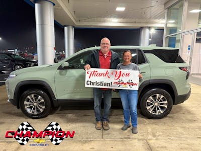 We had a great experience with Champion Chevrolet! Christian was the best! I love my new equinox Christian was the best! I love my new equinox More
