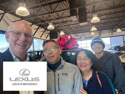 Our first experience with Lexus, we started by visiting the dealer just to begin the process of looking for mid-size SUV's, the first of multiple dealers we would visit. A few visits later we left as owne the dealer just to begin the process of looking for mid-size SUV's, the first of multiple dealers we would visit. A few visits later we left as owners, part of the Lexus family and enjoyed every moment of the journey. Great sales team all the way around that supported one another to take care of us like we really mattered and we felt like it was genuine the entire time. One of our visits was Bob's day off and we simply wanted to look at interior and exterior color options, we let the other sales folks know that, instead of ignoring us, they jumped in to help us, bringing vehicles for us to test drive and compare, asked us questions, guided us, etc. Most dealerships would not treat you this way. Lexus of Brookfield and Bob Hill are the place to go for all your Lexus needs, thank you to all of you for your help, guidance and being a joy to be around. More