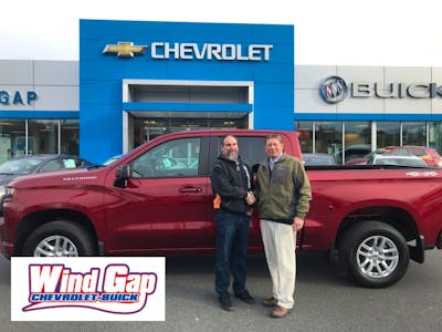 expectations exceeded We are truly impressed with staff at wind gap Chevrolet. They worked very hard to make the purchase of our new Silverado in a timely fashion. Bryan We are truly impressed with staff at wind gap Chevrolet. They worked very hard to make the purchase of our new Silverado in a timely fashion. Bryan and crew are very professional and personable. We will be recommending them to everyone we know who is looking for a new vehicle. Thank you. More