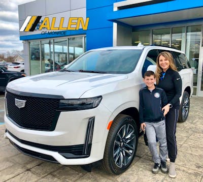 Thank you to Craig Sauer and staff at Allen Chevrolet Cadillac For the great customer service! We love our new Escalade, she’s a beauty. I really appreciated the quick and easy communication, no pressure Cadillac For the great customer service! We love our new Escalade, she’s a beauty. I really appreciated the quick and easy communication, no pressure, and special attention to detail you provided. This is our 3rd vehicle purchase from Allen Chevrolet Cadillac and you never disappoint! More