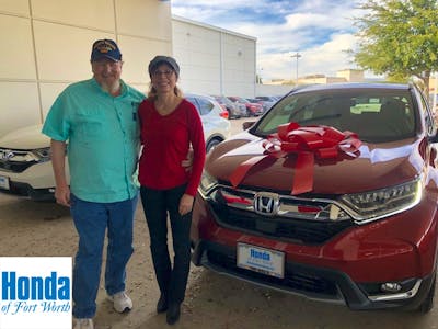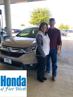 Honda of Fort Worth buying experience We appreciated the professionalism of your staff. Richelle and Dominic made the experience easy and, in fact, enjoyable. Everything was expedited in s We appreciated the professionalism of your staff. Richelle and Dominic made the experience easy and, in fact, enjoyable. Everything was expedited in such a way that we wasted very little time and came away with a beautiful CR-V which we already love. Richelle made sure that the car was perfect and walked us through all the new technology. We did not feel rushed, and actually, felt special. We will recommend the dealership and especially Richelle and Dominic to all our friends. More