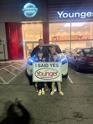I am very pleased with the deal and service I received at Younger Nissan. I was looking for a very specific color and trim level, and I browsed their inventory on their website and not only found the vehicl Younger Nissan. I was looking for a very specific color and trim level, and I browsed their inventory on their website and not only found the vehicle I was looking for, but they also advertised a great deal. I was shopping from close by but out of state and they made the whole process easy. More