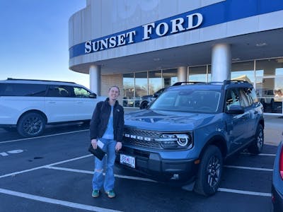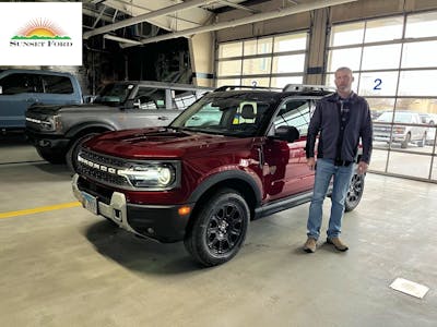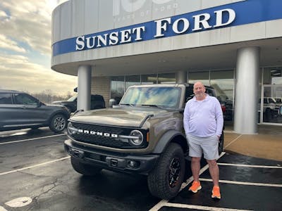 Our salesman, Jim Wagstaff and Sunset Ford treated us very well, we are very pleased with our 2025 Bronco purchase. Sunset Ford will be our first stop for any future vehicle purchases. Thanks again Sunse very well, we are very pleased with our 2025 Bronco purchase. Sunset Ford will be our first stop for any future vehicle purchases. Thanks again Sunset Ford! More