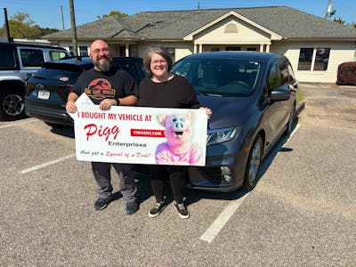 We were very pleased with our experience with Pigg. Our Salesman , Camm, was professional, knowledgeable, friendly, and best of all he was not pushy. Trading in and purchasing our new vehicle was a ver More