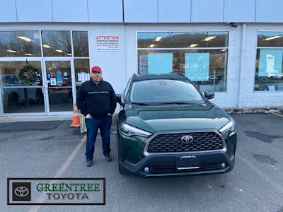 I live in NC but purchased my new 2021 RAV4 from Greentree Toyota in CT because my initial interaction with sales associate Matt Hart was very positive. Matt reached out to me shortly after I expres Greentree Toyota in CT because my initial interaction with sales associate Matt Hart was very positive. Matt reached out to me shortly after I expressed interest in a new RAV4. He listened carefully, answered all of my questions regarding the sales process, trade-in, Toyota and Greentree options/fees and provided complete transparency leading up to finalizing the purchase order and scheduling the RAV4 inspection and delivery. on delivery day, he facilitated the completion of all sales/transfer documents and walked me thru the features and inspections of my new car. I appreciated Matt's professionalism working over the phone as I never stepped foot into the dealership and when I met him in person he was very personable and tried to get me in and out of the dealership as quickly as possible to accommodate my busy schedule. The process from start to finish was less than a week, very efficient amid covid/bad weather/supply chain issues. I enjoyed the experience and working with Matt and the team at Greentree Toyota. I would recommend to my friends to visit Greentree Toyota for a new car and to ask for Matt Hart. More