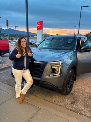 What an amazing dealership. Such a great buying experience. Pablo is AWESOMW!! We will be back in a few years to purchase another vehicle from Woodmen Nissan. I encourage ev Such a great buying experience. Pablo is AWESOMW!! We will be back in a few years to purchase another vehicle from Woodmen Nissan. I encourage everyone to stop by and check them out. More