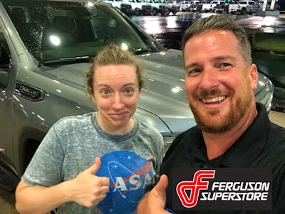 I wouldn't even think of going anywhere else! I was a customer of Ferguson Superstore in the past, and recently had the pleasure of watching Jordan Savage work his magic on finding a new truck for I was a customer of Ferguson Superstore in the past, and recently had the pleasure of watching Jordan Savage work his magic on finding a new truck for my boyfriend. I decided the time was right for me to get a new truck, but with Covid-19, there just wasn't any trucks to be found that were exactly what I wanted. This is where Jordan Savage worked his magic again. Not only did he check in with me to see exactly what I wanted, but went as far as keeping track of recent arrivals and projected arrivals, and found the exact truck I was looking for even though the supply of new trucks was and is severely limited. That is what sales service and customer service is supposed to look like! Jordan Savage listens to what you want, and then turns a conversation into an actual truck! Jordan even stayed late the day the truck arrived to finalize everything because he knows how far I have to travel and what my daily work schedule is. The management team stepped up and made the trade in process quick and easy, and made sure all of the discounts and rebate programs I qualified for were applied. The old saying of every little bit helps is how they approach a sale. And it shows... and it's appreciated. But the outstanding service at Ferguson Superstore doesn't stop with the sales department. Courtnei Young in the finance department made finishing the whole process extremely easy. From explaining financing options to warranty options, she was answering questions before I could even ask them (yes, she's that good!). And on top of it, Courtnei discovered savings and rate choices that made a big difference. The whole process was easy, and the Ferguson Superstore team once again proved why they are the best around! More