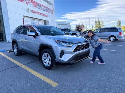 Val rekindled our interest in the Toyota brand, initially describing the new Crown Signia, which we decided wasn't quite suitable. We then decided to investigate a hybrid. Val showed us a number of used Rav describing the new Crown Signia, which we decided wasn't quite suitable. We then decided to investigate a hybrid. Val showed us a number of used Rav 4s as there were no new ones available. We finally decided to put down a minimal, refundable deposit on our ideal RAV 4 Hybrid. When it finally arrived, Val enthusiastically notified us, spent extra time to show us our new potential purchase even though it had not completed the total repurchase check up. We gave our final approval to accept it and Val steered us through the necessary processes to complete our purchase. She was with us every step of the way to answer our many questions. She assisted us through the app download and connection to our phones. Val has done follow-up calls with us and has assured us that she will be available for any future queries. We have appreciated all her help and expertise and, certainly, all her delicious cookies. More